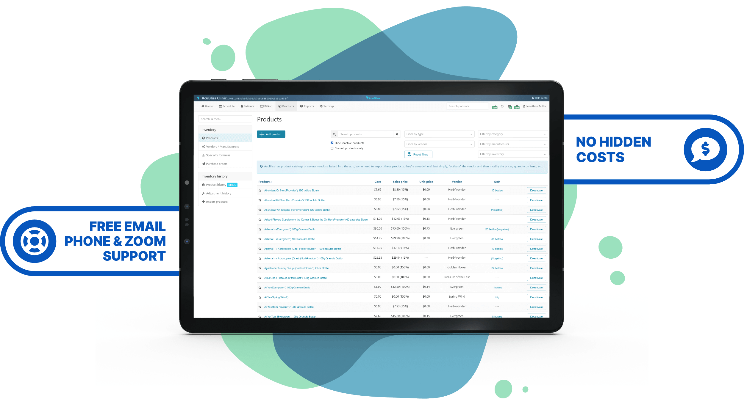 Preloaded product lists from popular vendors such as Spring Wind Herbs, Legendary Herbs, Mayway, Evergreen, Golden Flower Chinese Herbs, Treasures of the East, and more to come