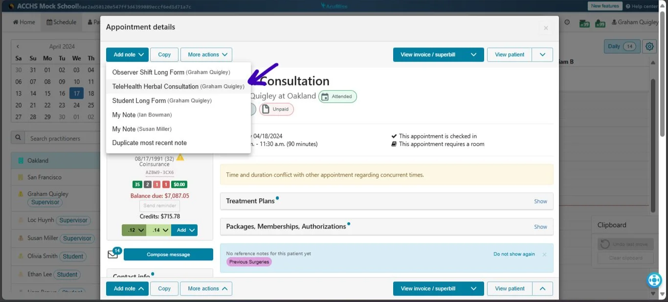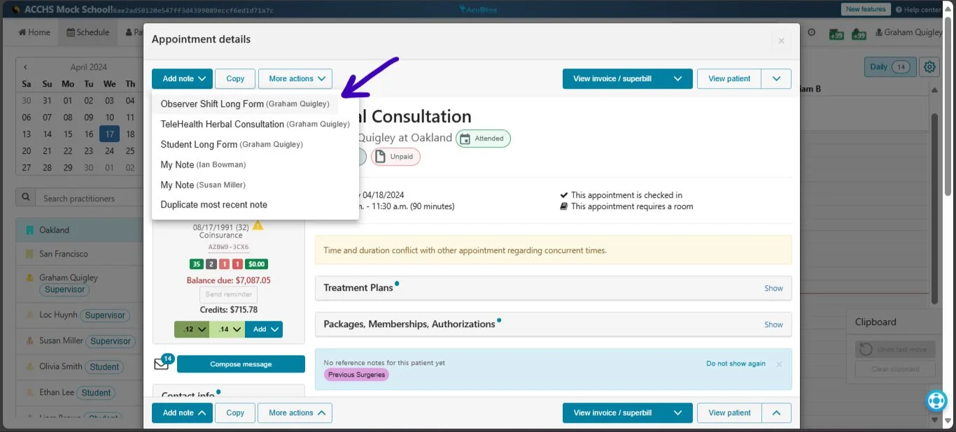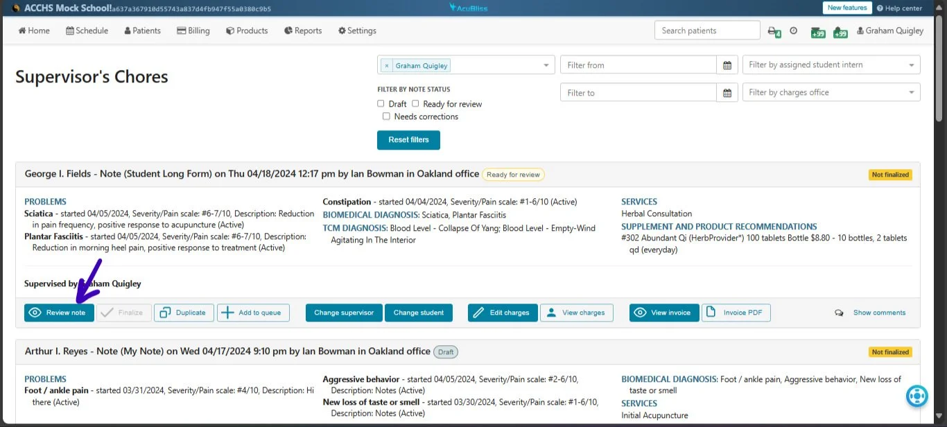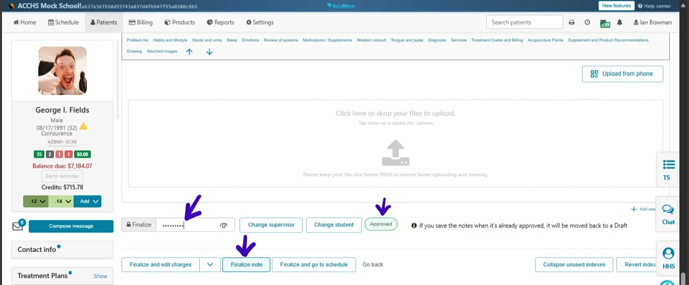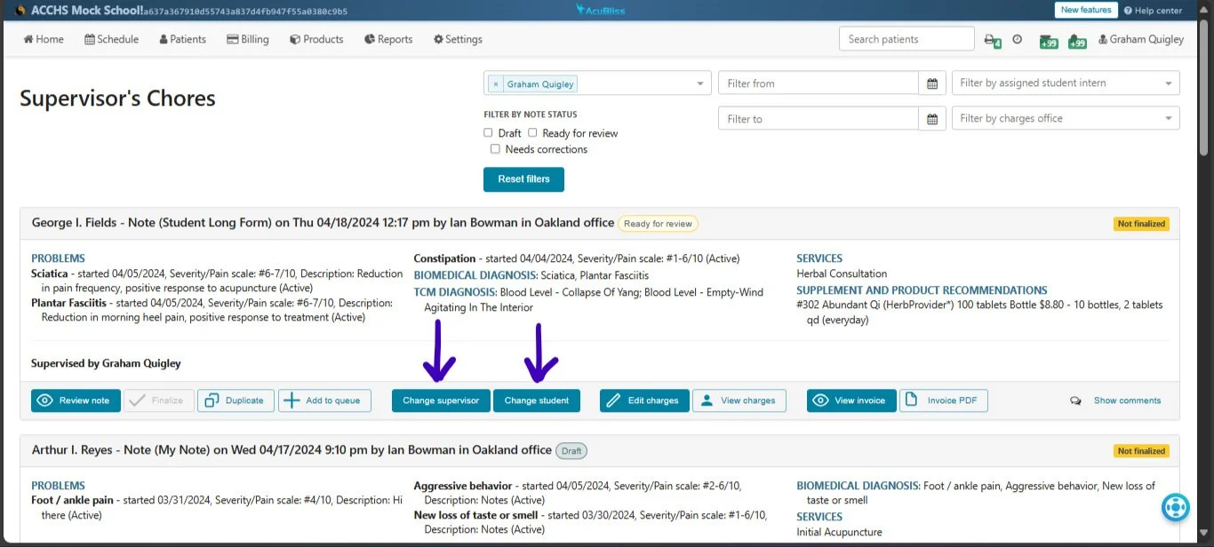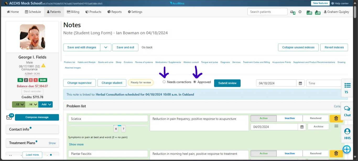 We've upgraded our AcuBliss software to better accommodate larger school clinics. Now, supervisors and interns can communicate directly within SOAP notes.